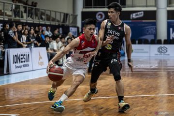 Pebasket Rajawali Medan Samuel Devin Susanto (kiri) melewati adangan pebasket Satya Wacana Salatiga Teemo Teemo (kanan) saat pertandingan Indonesian Baskeball League (IBL) 2026 di GOR Basket Prof. Dr. dr. Susilo Wibowo, Semarang, Jawa Tengah, Jumat (16/1/2026). Rajawali Medan menang dengan skor 76-60. ANTARA FOTO/Aprillio Akbar/wsj.