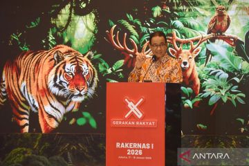 Anggota Kehormatan Gerakan Rakyat Anies Baswedan menyampaikan orasi kebangsaan pada Rakernas I 2026 Gerakan Rakyat di Jakarta, Sabtu (17/1/2026). Rakernas tersebut diisi dengan pelantikan pengurus Dewan Pimpinan Pusat Gerakan Rakyat periode 2025-2030 sekaligus penyampaian orasi kebangsaan dari Anies Baswedan dengan tema "Keadilan Ekologis: Kembalikan Hutan Indonesia". ANTARA FOTO/Indrianto Eko Suwarso/bar