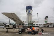 Petugas memasukkan karung berisi garam ke dalam pesawat Cessna Caravan 208B PK-SNP untuk persemaian garam dengan teknologi Operasi Modifikasi Cuaca (OPC) di Bandara Jenderal Ahmad Yhani, Semarang, Jawa Tengah, Minggu (18/1/2026). Badan Nasional Penanggulangan Bencana (BNPB) bekerja sama dengan Badan Meteorologi, Klimatologi, dan Geofisika (BMKG) melakukan OMC selama lima hari sebagai upaya mitigasi bencana serta meminimalisir berkumpulnya awan yang berpotensi menimbulkan intensitas hujan tinggi terjadi di sejumlah wilayah Jawa Tengah yang rawan bencana hidrometeorologi. ANTA RA FOTO/Makna Zaezar/nz