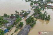 Foto udara banjir merendam permukiman dan persawahan di Desa Karangligar, Telukjambe, Karawang, Jawa Barat, Senin (19/1/2026). Berdasarkan data BPBD Karawang, banjir yang dipicu curah hujan tinggi serta meluapnya Sungai Sungai Citarum dan Sungai Cibeet berdampak kepada 6.596 warga di 13 kecamatan. ANTARA FOTO/Darryl Ramadhan/bar