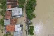 Foto udara banjir merendam pemukiman di Desa Pantai Bakti, Muara Gembong, Kabupaten Bekasi, Jawa Barat, Selasa (20/1/2026). BPBD Kabupaten Bekasi mencatat banjir yang dipicu curah hujan yang tinggi dan meluapnya Sungai Cibeet dan Citarum itu berdampak kepada 17.563 kepala keluarga (KK) dari 33 desa di 15 kecamatan. ANTARA FOTO/Darryl Ramadhan/YU