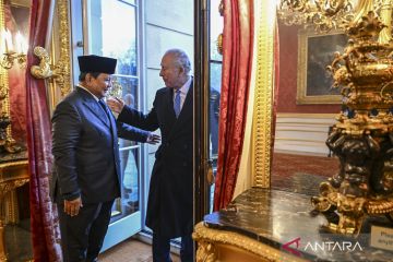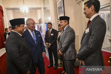 Presiden Prabowo Subianto (kiri) berbincang dengan Raja Charles III (kanan) sebelum menemui kelompok filantropi lingkungan Indonesia-Inggris di Lancaster House, London, Inggris, Rabu (21/1/2026). Pertemuan Presiden Prabowo Subianto dan Raja Charles III dengan sejumlah filantropi asal Indonesia dan Inggris tersebut membahas program-program konservasi termasuk mengenai konservasi gajah. ANTARA FOTO/Galih Pradipta/nz
