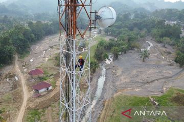 Petugas melakukan pemulihan tower BTS di Nagari Salareh Aia, Palembayan, Agam, Sumatera Barat, Jumat (23/1/2026). Berdasarkan data Kementerian Komunikasi dan Digital (Komdigi), jaringan seluler di wilayah terdampak bencana seperti Sumatera Barat dan Sumatera Utara dipastikan hampir pulih 100 persen ditangani. ANTARA FOTO/Iggoy el Fitra/tom.