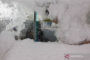 Kaca dari sebuah kedai makanan terselimuti oleh salju di kawasan dekat Times Square saat badai salju lebat menerjang sebagian besar wilayah Amerika Serikat di Kota New York, Amerika Serikat, Minggu (25/1/2026). Menurut Badan Layanan Cuaca Nasional Amerika Serikat, hujan salju lebat dan lapisan es berbahaya diperkirakan terjadi di wilayah yang membentang dari Texas bagian timur hingga Carolina Utara. Keadaan darurat telah diumumkan di 20 lebih negara bagian. ANTARA FOTO/REUTERS/Jeenah Moon/wsj.