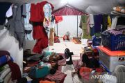 Sejumlah warga penyintas bencana banjir bandang dan tanah longsor bercengkrama di dalam tenda pengungsian di Kelurahan Hutanabolon, Kecamatan Tukka, Tapanuli Tengah, Sumatera Utara, Senin (26/1/2026). Posko pengungsian tersebut dihuni oleh 912 jiwa dari 327 KK yang tersebar dari lingkungan 3, 4, dan 5 Kelurahan Hutanabolon. ANTARA FOTO/Indrianto Eko Suwarso/rwa.