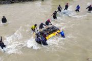 Foto udara personel TNI-AL bersama warga mengumpulkan batu untuk mengisi kawat bronjong jembatan di Sungai Batang Anai, Nagari Anduriang, Kayu Tanam, Padang Pariaman, Sumatera Barat, Kamis (29/1/2026). Tim TNI-AL Kodaeral II Padang bersama masyarakat setempat bergotong-royong membangun jembatan darurat pasca putusnya jembatan penghubung Nagari Anduriang dan Pasar Kayu Tanam pada November 2025. ANTARA FOTO/Iggoy el Fitra/wsj.
