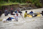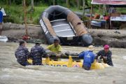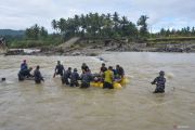 Personel TNI-AL bersama warga mengumpulkan batu untuk mengisi kawat bronjong jembatan di Sungai Batang Anai, Nagari Anduriang, Kayu Tanam, Padang Pariaman, Sumatera Barat, Kamis (29/1/2026). Tim TNI-AL Kodaeral II Padang bersama masyarakat setempat bergotong-royong membangun jembatan darurat pasca putusnya jembatan penghubung Nagari Anduriang dan Pasar Kayu Tanam pada November 2025. ANTARA FOTO/Iggoy el Fitra/wsj.