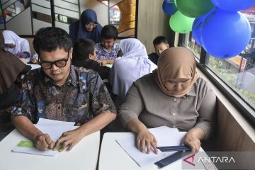 Siswa penyandang disabilitas netra menulis cerita menggunakan huruf braille saat rangkaian peringatan Hari Braille Sedunia di Kota Tasikmalaya, Jawa Barat, Kamis (29/1/2026). Kegiatan yang diinisiasi Paguyuban Disabilitas Tasikmalaya tersebut diisi dengan membaca dan menulis braille oleh 104 siswa Sekolah Luar Biasa (SLB) dari Tasikmalaya dan Ciamis sebagai upaya meningkatkan kesadaran akan pentingnya huruf braille sebagai sarana komunikasi dalam pemenuhan hak asasi manusia bagi penyandang tunanetra. ANTARA FOTO/Adeng Bustomi/bar