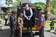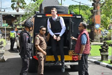 Terdakwa yang merupakan warga negara Australia Darcy Francesco Jenson (kedua kanan) turun dari kendaraan taktis saat akan menjalani sidang tuntutan kasus penembakan warga Australia di Pengadilan Negeri Denpasar, Bali, Senin (2/2/2026). Jaksa Penuntut Umum menuntut tiga orang warga negara Australia yakni Paea-I-Middlemore Tupou dan Coskun Mevlut dengan hukuman penjara 18 tahun serta Darcy Francesco Jenson dengan hukuman selama 17 tahun penjara dalam kasus pembunuhan berencana terhadap dua warga negara Australia yaitu Zivan Radmanovic dan korban luka Sanar Ghanim di Bali pada 14 Juni 2025. ANTARA FOTO/Fikri Yusuf/foc.
