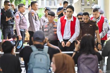 Petugas mengawal terdakwa yang merupakan warga negara Australia Paea-I-Middlemore Tupou (kanan) dan Coskun Mevlut (ketiga kanan) saat akan menjalani sidang tuntutan kasus penembakan warga Australia di Pengadilan Negeri Denpasar, Bali, Senin (2/2/2026). Jaksa Penuntut Umum menuntut Paea-I-Middlemore Tupou dan Coskun Mevlut dengan hukuman penjara 18 tahun serta Darcy Francesco Jenson dengan hukuman selama 17 tahun penjara dalam kasus pembunuhan berencana terhadap dua warga negara Australia yaitu Zivan Radmanovic dan korban luka Sanar Ghanim di Bali pada 14 Juni 2025. ANTARA FOTO/Fikri Yusuf/foc.