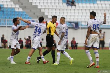 Sejumlah pesepak bola Persijap Jepara memprotes keputusan wasit Aidil Azmi (tengah) usai menganulir gol saat bertanding melawan Arema FC dalam pertandingan BRI Super League di Stadion Kanjuruhan, Malang, Jawa Timur, Senin (2/2/2026). Arema mengalahkan Persijap dengan skor akhir 1-0. ANTARA FOTO/Ari Bowo Sucipto/foc.