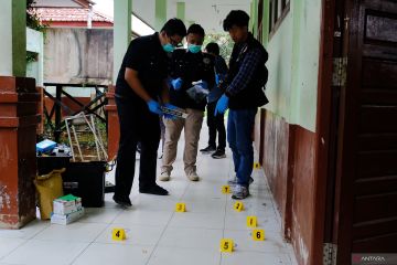 Sejumlah petugas Bidang Laboratorium Forensik (Bidlabfor) Polda Kalimantan Barat melakukan olah tempat kejadian perkara (TKP) di SMPN 3, Sungai Raya, Kabupaten Kubu Raya, Kalimantan Barat, Selasa (3/2/2026). Ledakan bom rakitan terjadi di empat ruang kelas SMPN 3 Kubu Raya, Kalimantan Barat, sementara pelaku pelemparan bom rakitan telah diamankan dan penyebab kejadian masih dalam penyelidikan kepolisian. ANTARA FOTO/Jessica Wuysang/wsj.