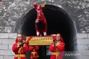 Penampil membawakan tarian kuda bambu serta mengarak patung sapi musim semi (chun niu) sebagai bagian dalam perayaan Festival Li Chun ke-19 yang digelar di Observatorium Kuno Beijing, Kota Beijing, China, Rabu (4/2/2026). Festival yang berlangsung 13 hari sebelum Tahun Baru Imlek tersebut diadakan sebagai penanda awal musim semi dan dimulainya waktu tanam di tahun yang baru berdasarkan penanggalan tradisional China. ANTARA FOTO/Desca Lidya Natalia/rwa.