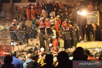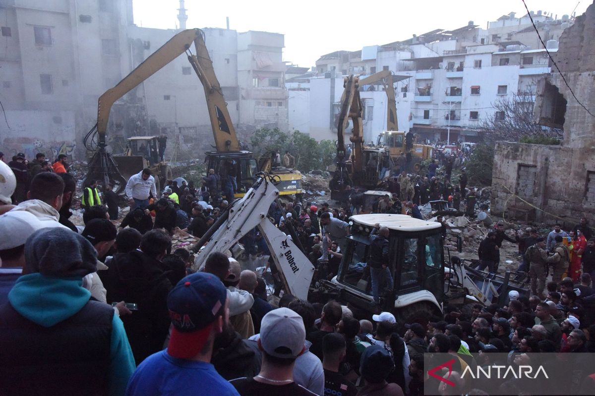 Operasi penyelamatan di lokasi runtuhnya bangunan tempat tinggal di Tripoli, Lebanon, Senin (9/2/2026). Berdasarkan laporan saluran TV lokal Al-Jadeed, setidaknya lima orang warga tewas saat dua buah bangunan tempat tinggal runtuh secara mendadak pada hari Minggu (8/2). ANTARA FOTO/Xinhua/Khaled Habashiti/bar