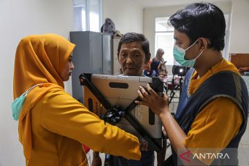 Petugas menginput data warga untuk Cek Kesehatan Gratis (CKG) di Puskesmas Singgani, Palu, Sulawesi Tengah, Selasa (10/2/2026). Sejak diluncurkan 10 Februari 2025 lalu, layanan CKG yang tersedia di 10.226 puskesmas tersebut telah menjangkau lebih dari 70 juta warga dari berbagai kelompok umur dan menyasar lebih dari 5,9 juta siswa di seluruh Indonesia. ANTARA FOTO/Basri Marzuki/wpa.