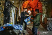Relawan Dompet Dhuafa Aryo Prasojo (kanan) melakukan transaksi jual beli produk UMKM warga Palestina yang bermukim di kawasan Kota Tua Yerusalem (Al-Quds), Palestina, Sabtu (14/2/2026). Dalam menyambut datangnya bulan suci Ramadhan, Dompet Dhuafa menyalurkan sejumlah bantuan dari masyarakat Indonesia untuk warga Palestina berupa wakaf Al-quran 300 mushaf, santunan anak yatim dan hafidz Quran, berbelanja produk UMKM lokal, serta paket berbuka puasa. ANTARA FOTO/Muhammad Adimaja/wpa.