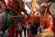 Seorang lauya atau dukun Tionghoa melaksanakan ritual buka mata naga terhadap replika Naga Persahabatan di Gang Sayur, Jalan Parit Dua, Desa Parit Baru, Kecamatan Sungai Raya, Kabupaten Kubu Raya, Kalimantan Barat, Senin (16/2/2026). Yayasan Keluarga Sosial Sam Thian Pak Kung Kubu Raya menggelar prosesi ritual Naga Buka Mata yang dipimpin seorang lauya atau dukun Tionghoa, dan nantinya replika naga tersebut akan diarak dalam rangkaian perayaan Tahun Baru Imlek dan Cap Go Meh 2026. ANTARA FOTO/Jessica Wuysang/bar