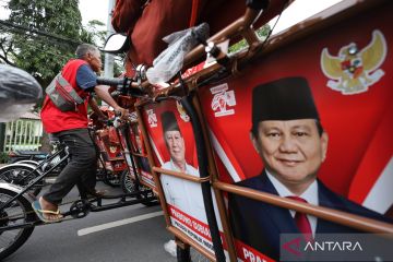 Seorang tukang becak mengendarai becak listrik bantuan dari Presiden Prabowo Subianto di Kota Kediri, Jawa Timur, Rabu (25/2/2026). Sebanyak 200 unit becak listrik produksi PT Pindad tersebut disalurkan melalui Yayasan Gerakan Solidaritas Nasional sebagai upaya elektrifikasi angkutan roda tiga di Kota Kediri yang diberikan kepada tukang becak lanjut usia guna meningkatkan kesejahteraan mereka. ANTARA FOTO/Prasetia Fauzani/nz