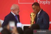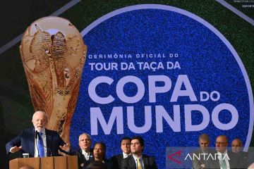 Presiden Brasil Luiz Inacio Lula da Silva (kiri) berpidato saat seremoni FIFA World Cup Trophy Tour di Brasilia, Brasil, Kamis (26/2/2026). ANTARA FOTO/Xinhua/Lucio Tavora/rwa.
