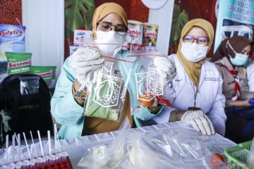 Petugas menguji kandungan zat pada sampel produk pangan saat pengawasan pangan terpadu di Lotte Grosir Pasar Rebo, Jakarta, Senin (9/3/2026). Selama bulan Ramadhan dan menjelang Idul Fitri, BPOM menggelar pengawasan pangan khususnya pada produk makanan olahan, siap saji, dan kemasan guna melindungi konsumen dari produk tidak layak edar serta mengandung zat berbahaya. ANTARA FOTO/Asprilla Dwi Adha/foc.
