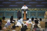 Presiden Prabowo Subianto menyampaikan amanat pada peringatan Nuzululquran di Istana Negara, Jakarta, Selasa (10/3/2026). Peringatan peristiwa turunnya wahyu pertama kepada Nabi Muhammad SAW itu diharapkan menjadi momentum untuk memahami dan mengamalkan Al Quran dalam kehidupan sehari-hari. ANTARA FOTO/Hafidz Mubarak A/YU