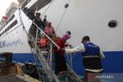 Penumpang menuruni tangga KM Dorolonda setibanya di Dermaga Jamrud Utara, Pelabuhan Tanjung Perak, Surabaya, Jawa Timur, Rabu (11/3/2026). Kapal dari Balikpapan itu menurunkan 2.653 pemudik di Surabaya. ANTARA FOTO/Didik Suhartono/nym.