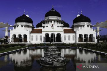 Suasana halaman Masjid Raya Baiturrahman di Banda Aceh, Aceh, Senin (9/3/2026). Kementerian Kebudayaan menetapkan Masjid Raya Baiturrahman sebagai situs cagar budaya nasional melalui penyerahan sertifikat resmi pada 6 Maret 2026 berdasarkan nilai sejarah yang tinggi, arsitektur monumental, serta sebagai simbol ketangguhan masyarakat Aceh. ANTARA FOTO/Akramul Muslim/wsj.