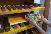 Umat Hindu melakukan persembahyangan terhadap puluhan lontar atau naskah kuno Bali pada Hari Saraswati di Perpustakaan Umum Kota Denpasar, Bali, Sabtu (4/4/2026). Kegiatan yang digelar Dinas Perpustakaan dan Kearsipan Kota Denpasar pada Hari Saraswati tersebut mengupacarai sebanyak 21.844 buku dan 30 bundel lontar atau naskah kuno Bali sebagai wujud syukur serta memperingati turunnya ilmu pengetahuan suci kepada umat manusia. ANTARA FOTO/Nyoman Hendra Wibowo/wsj.