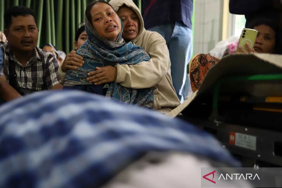 Keluarga menangis saat jenazah korban bencana longsor dishalatkan sebelum dimakamkan di Desa Sembahe, Kecamatan Sibolangit, Kabupaten Deli Serdang, Sumatera Utara, Rabu (8/4/2026). Berdasarkan data BPBD Deli Serdang sebanyak lima korban ditemukan meninggal dunia dan satu luka-luka akibat bencana longsor yang terjadi pada Selasa (7/4/2026). ANTARA FOTO/Yudi Manar/nym.