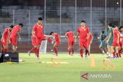 Pesepak bola Timnas Indonesia U-17 mengikuti latihan jelang laga ASEAN U-17 Boys Championship atau Piala AFF U-17 2026 di Stadion Gelora 10 November, Surabaya, Jawa Timur, Minggu (12/4/2026). Timnas Indonesia U-17 akan menghadapi Timnas Timor Leste pada pertandingan grup A Piala AFF U-17 2026 pada Senin (13/4) di Stadion Gelora Joko Samudro, Gresik. ANTARA FOTO/Rizal Hanafi/tom.