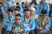 Jamaah calon haji menunggu pemeriksaan setibanya di Asrama Haji Indramayu, Jawa Barat, Selasa (21/4/2026). Sebanyak 441 jamaah calon haji dan empat orang petugas haji kelompok terbang (kloter) pertama embarkasi Kertajati yang berasal Kabupaten Indramayu masuk ke asrama untuk transit dan beristirahat sebelum diberangkatkan ke Arab Saudi melalui Bandara Kertajati. ANTARA FOTO/Dedi Suwidiantoro/nz