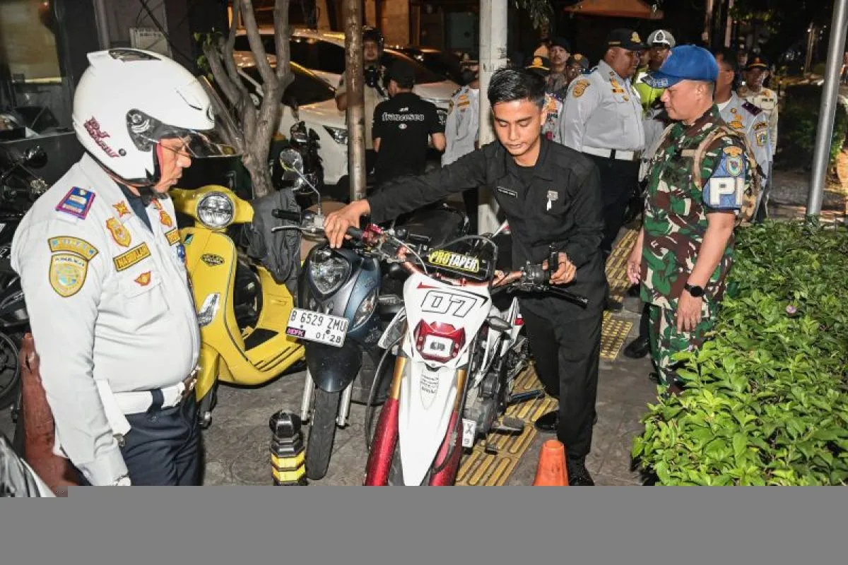 Petugas menertibkan kendaraan yang parkir sembarangan di pedestrian Jalan Gunawarman, Kebayoran Baru, Jakarta, Rabu (22/4/2026). Suku Dinas Perhubungan Jakarta Selatan bersama petugas gabungan melakukan penertiban secara persuasif terhadap kendaraan bermotor yang parkir sembarangan dan menganggu fungsi fasilitas umum seperti pedestrian. ANTARA FOTO/Sulthony Hasanuddin/sgd