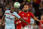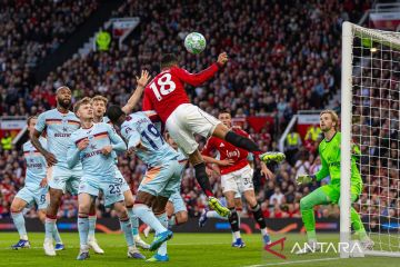 Pesepak bola Manchester United Casemiro (18) mencetak gol ke gawang Brentford dalam laga pekan ke-34 Liga Inggris di Stadion Old Trafford, Manchester, Inggris, Senin (27/4/2026) waktu setempat. Manchester United menaklukkan Brentford dengan skor 2-1. ANTARA FOTO/Xinhua/tom.