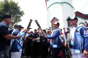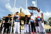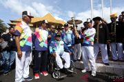 Menpora Imam Nahrawi (kedua kiri) didampingi Ketua Inapgoc Raja Sapta Oktohari (ketiga kanan) dan Wali Kota Ternate Burhan Abdurahman (kedua kiri) melakukan prosesi awal kirab obor (torch relay) Asian Para Games 2018 di Kedaton Kasultanan Ternate, Maluku Utara, Minggu (9/9/2018). Pawai obor di Ternate tersebut untuk menggelorakan semangat kesetaraan terhadap para penyandang disabilitas di kawasan Indonesia timur terutama dalam bidang olahraga. ANTARA FOTO/Humas Kemenpora/pras.