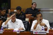 Menteri Hukum dan HAM Yasonna Laoly (kiri) dan Jaksa Agung HM Prasetyo (kanan) mengikuti rapat kerja dengan Komisi III DPR di Kompleks Parlemen, Senayan, Jakarta, Kamis (13/9/2018). Rapat kerja tersebut membahas tentang Rencana Kerja serta Anggaran Kejaksaan Agung dan Kementerian Hukum dan HAM. ANTARA FOTO/Rivan Awal Lingga/foc.