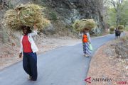 Warga memanggul batang jerami padi di Desa Leprak, Klabang, Bondowoso, Jawa Timur, Sabtu (15/9/2018) . Warga di desa tersebut kesulitan memperoleh rumput pakan ternak saat musim kemarau dan terpaksa memberi pakan hewan ternak dengan jerami padi bekas panen. ANTARA FOTO/Seno/ama