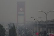 Sejumlah kendaraan melintas di atas jembatan ampera yang diselimuti kabut asap di Palembang, Sumatra Selatan, Minggu (16/9/2018). Berdasarkan pantauan satelit milik Lembaga Penerbangan Antariksa Nasional (Lapan), terdapat 709 titik panas (hot spot) yang tersebar di berbagai provinsi di Indonesia, 109 titik di antaranya terdapat di Sumsel. ANTARA FOTO/Nova Wahyudi/kye