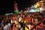 Anak Tabuik Nagari Pasa memainkan gendang tambua dan tasa di depan Tugu Tabuik, Pariaman, Sumatra Barat, Sabtu (15/9/2018). Atraksi gendang "sosoh" tersebut diselenggarakan dalam prosesi "Basalisiah", yakni beradunya dua kelompok nagari sebagai bagian dari rangkaian kegiatan Pesona Budaya Hoyak Tabuik Pariaman 2018. ANTARA FOTO/Iggoy el Fitra/kye
