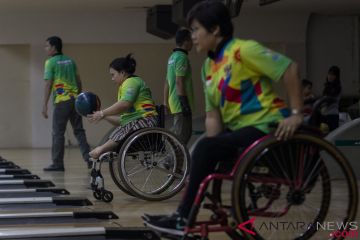 Atlet National Paralympic Committee (NPC) cabang olahraga Bowling mengikuti pemusatan latihan nasional (Pelatnas) Asian Para Games 2018 di Solo, Jawa Tengah, Senin (17/9/2018). Cabang olahraga Bowling akan menurunkan 10 atlet pada Asian Para Games 2018 di Jakarta Oktober mendatang. ANTARA FOTO/Mohammad Ayudha/kye