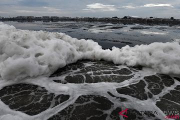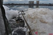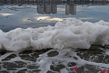 Busa limbah domestik memenuhi kolam di Instalasi Pengolahan Air Waduk Pluit, Jakarta, Jumat (21/9/2018). Berdasarkan data Dinas Lingkungan Hidup DKI, sumber limbah yang mencemari air di Ibu kota berasal dari limbah permukiman sebanyak 72,7 persen, sisanya dari limbah perkantoran sebanyak 17,3 persen dan limbah industri 9,9 persen. ANTARA FOTO/Fanny Octavianus/wsj.