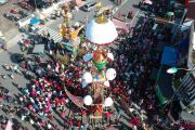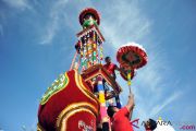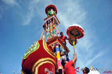 Warga Nagari Subarang memasang "bungo salapan" saat prosesi " Tabuik Naik Pangkek", di Pariaman, Sumatra Barat, Minggu (23/9/2018). "Tabuik Naik Pangkek" merupakan prosesi menyambungkan badan Tabuik dan pernak-perniknya, seperti sayap, ekor, buraq dan bunga salapan, menjelang dibuang ke laut dalam rangka memperingati Hari Asyura (10 Muharram) 1440 Hijriyah. ANTARA FOTO/Iggoy el Fitra/kye