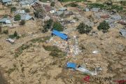 Foto aerial pemukiman yang hancur tersapu gelombang tsunami di Palu, Sulawesi Tengah, Sabtu (29/9/2018). Dampak dari gempa 7,7 SR tersebut menyebabkan sejumlah bangunan hancur dan sejumlah warga dievakuasi ke tempat yang lebih aman. ANTARA FOTO/Muhammad Adimaja/pras.