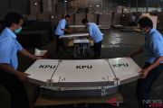 Pekerja menyusun kotak dan bilik suara Pemilu 2019 yang dicetak di pabrik PT Intan Ustrix Gresik, Jawa Timur, Minggu (30/9/2018). Jumlah kotak suara yang diproduksi secara keseluruhan mencapai sedikitnya 4 juta sedangkan bilik suara 2 juta. ANTARA FOTO/Zabur Karuru/pras.
