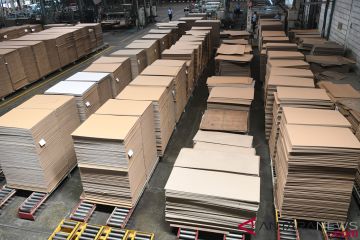 Suasana produksi kotak dan bilik suara Pemilu 2019 di pabrik PT Intan Ustrix Gresik, Jawa Timur, Minggu (30/9/2018). Jumlah kotak suara yang diproduksi secara keseluruhan mencapai sedikitnya 4 juta sedangkan bilik suara 2 juta. ANTARA FOTO/Zabur Karuru/pras.