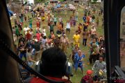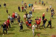 Warga korban gempa berebut pembagian logistik yang diangkut menggunakan helikopter di Kecamatan Sirenja, Palu, Sulawesi Tengah, Minggu (7/10/2018). Pembagian bantuan logistik menggunakan helikopter tersebut ditujukan untuk warga korban gempa yang daerahnya sulit dijangkau lewat jalur darat. ANTARA FOTO/Abriawan Abhe/foc.