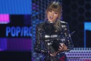 Penyanyi Taylor Swift menerima penghargaan sebagai Artis Terbaik dalam ajang American Music Awards 2018 di Los Angeles, California, Rabu (10/10/2018). ANTARA FOTO/REUTERS/Mario Anzuoni/pras.