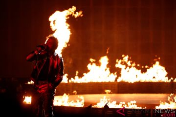 Penampilan penyanyi Post Malone saat American Music Awards 2018 di Los Angeles, California, Rabu (10/10/2018). ANTARA FOTO/REUTERS/Mario Anzuoni/pras.