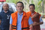 Narapidana LP Sukamiskin Fahmi Darmawansyah (kanan) bersiap menjalani pemeriksaan di gedung KPK Jakarta, Kamis (18/10/2018). Fahmi diperiksa KPK sebagai tersangka dalam penyidikan kasus dugaan suap perizinan dan fasilitas mewah di Lapas Sukamiskin, Bandung, Jawa Barat. ANTARA FOTO/Reno Esnir/wsj.