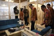 Presiden Joko Widodo (tengah) didampingi Gubernur Banten Wahidin Halim (kanan) meninjau rumah tahan gempa disela-sela pembukaan Trade Expo Indonesia ke-33 di Tangerang, Banten, Rabu (24/10/2018). Trade Expo Indonesia ke-33 menargetkan transaksi senilai Rp20 triliun dengan menampilkan sebanyak 300 produk dan jasa diantaranya kuliner nusantara, kerajinan, furniture, produk industri kreatif, industri strategis, makanan dan minuman. ANTARA FOTO/Puspa Perwitasari/wsj.