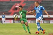 Pesepak bola PSMS Medan Frets Butuan (kiri) berebut bola dengan pemain Persib Bandung Supardi Nasir dalam pertandingan Sepak Bola Liga 1 di Stadion I Wayan Dipta, Gianyar, Bali, Jumat (9/11/2018). Persib Bandung kalah atas tim tamu PSMS Medan dengan skor 0-1. ANTARA FOTO/Nyoman Budhiana/ama.
